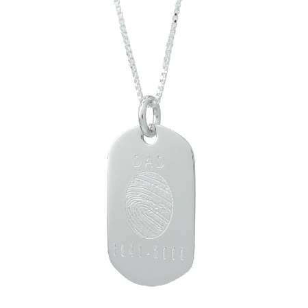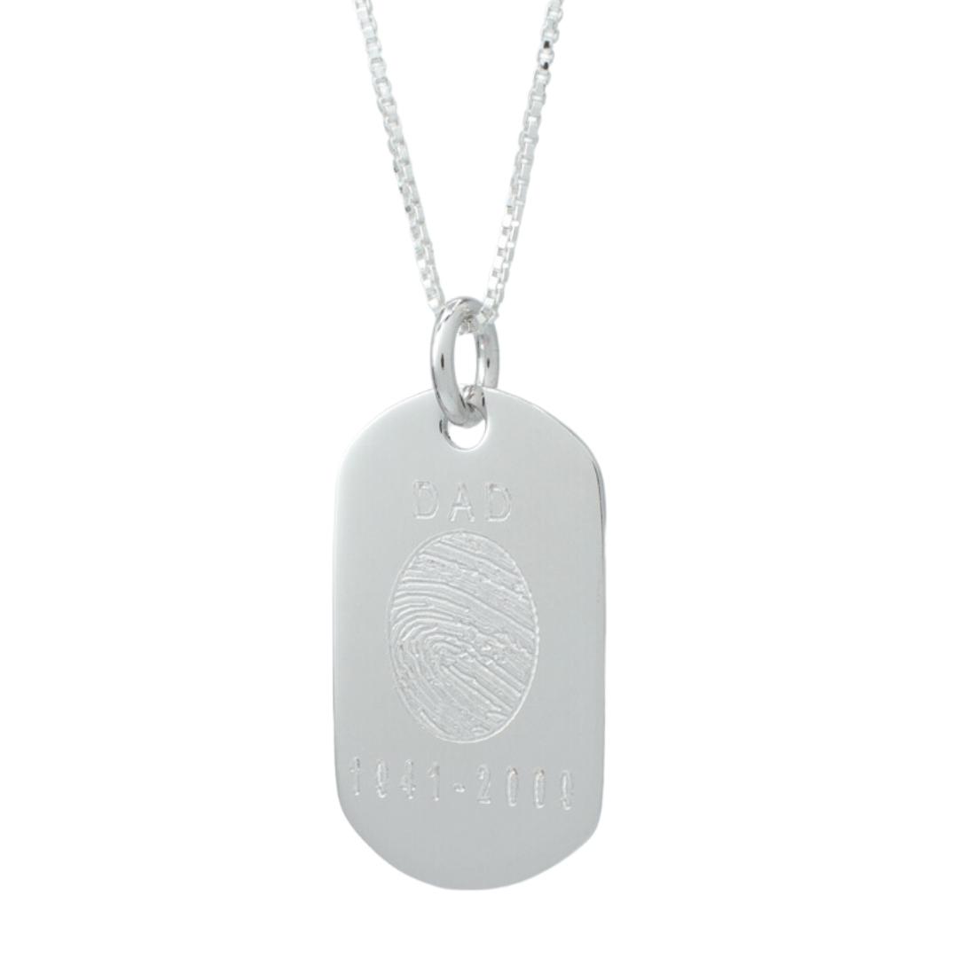 This beautifully crafted sterling silver memory tag is a cherished way to keep your loved one’s memory close. It measures 30mm x 20mm and can be engraved on both sides with a fingerprint, personalised message, or image.