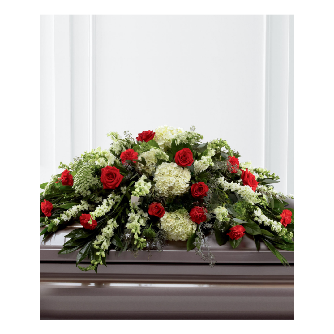 Please speak to one of our friendly funeral arrangers to include this beautiful coffin spray to your service plan