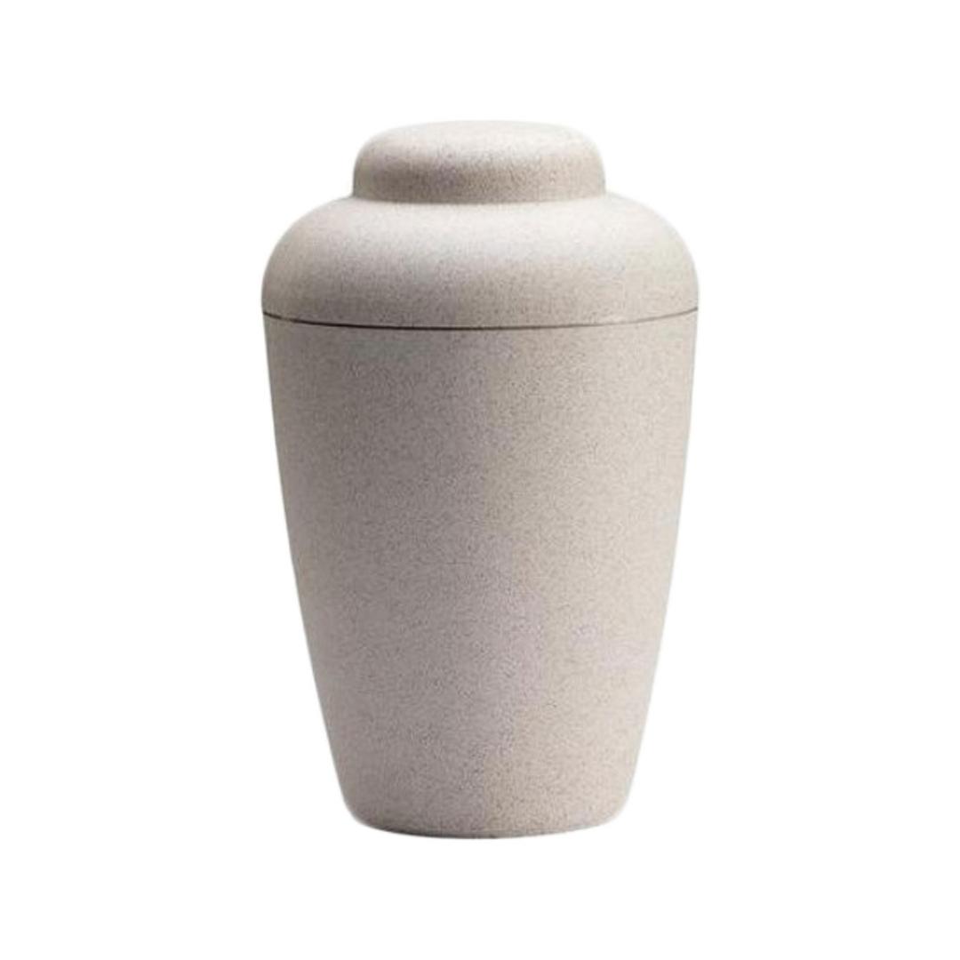 The Nature Urn is from our eco-friendly Danish Urn range. Traditional in design, but innovative and modern in structure, this is made from corn starch. The starch based polymer and sawdust composition hardens like plastic, however, the material completely decomposes when buried. The easy screw-on lid allows the urn to be used for scattering as well as for burial of ashes.